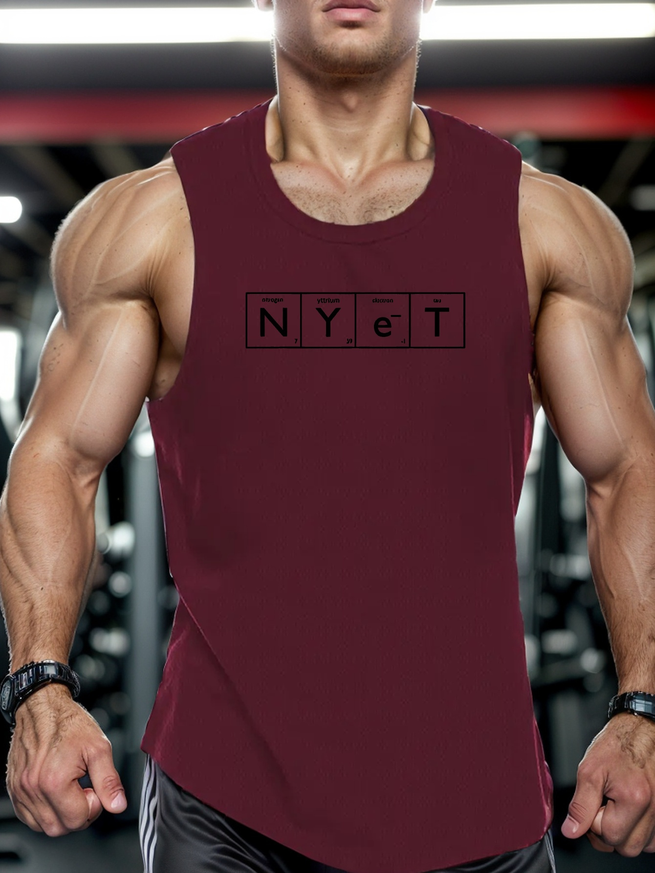 Men's Casual Black Tank Top - Polyester Knit, Geometric Design, Machine Washable, Summer Workout Tank for Gym & Fitness