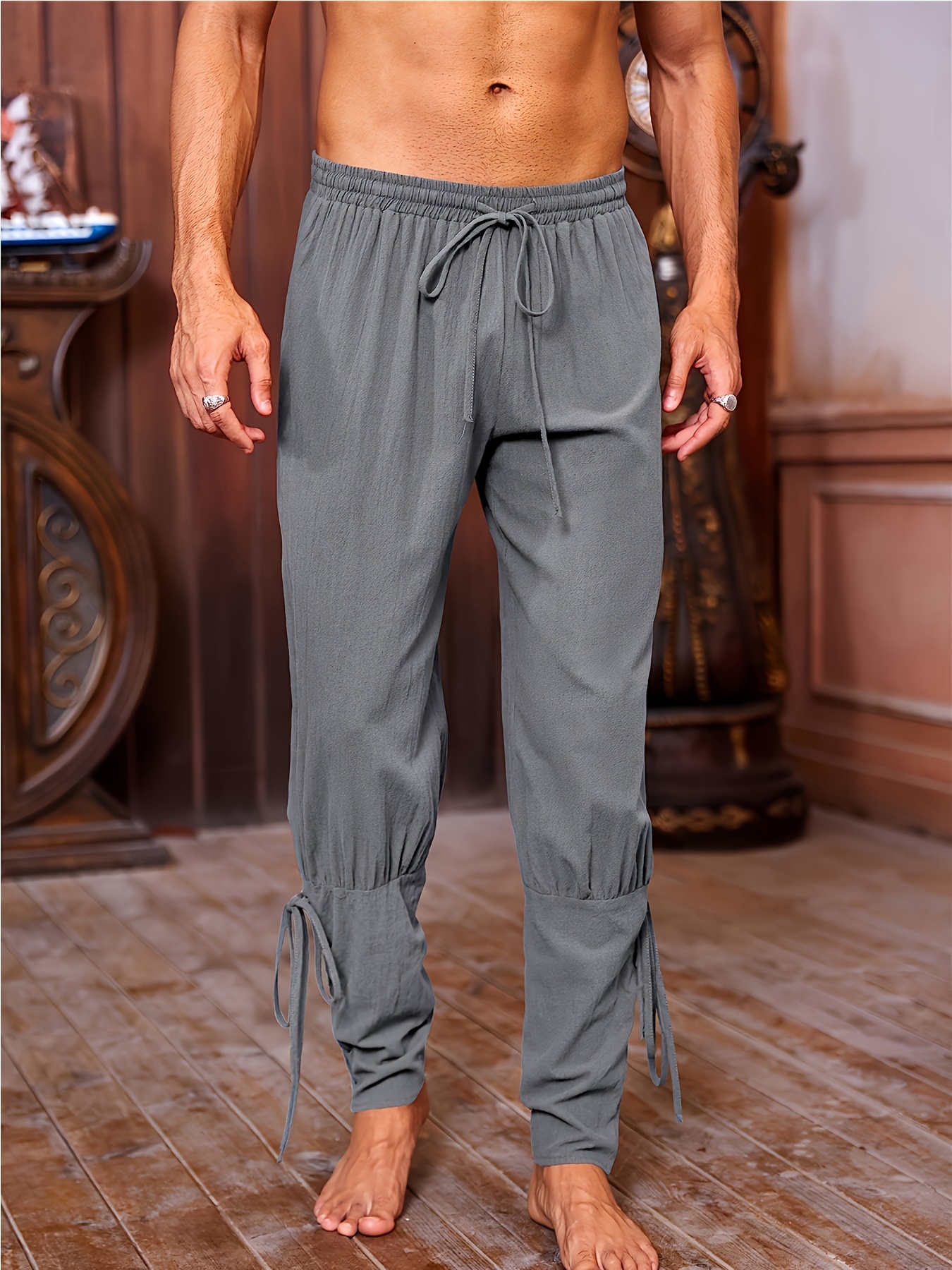 Men's Medieval Ankle Boot Pants, Viking Pirate Renaissance Clothing, Lace Up Drawstring, Decorative Sailor Casual Halloween Pants