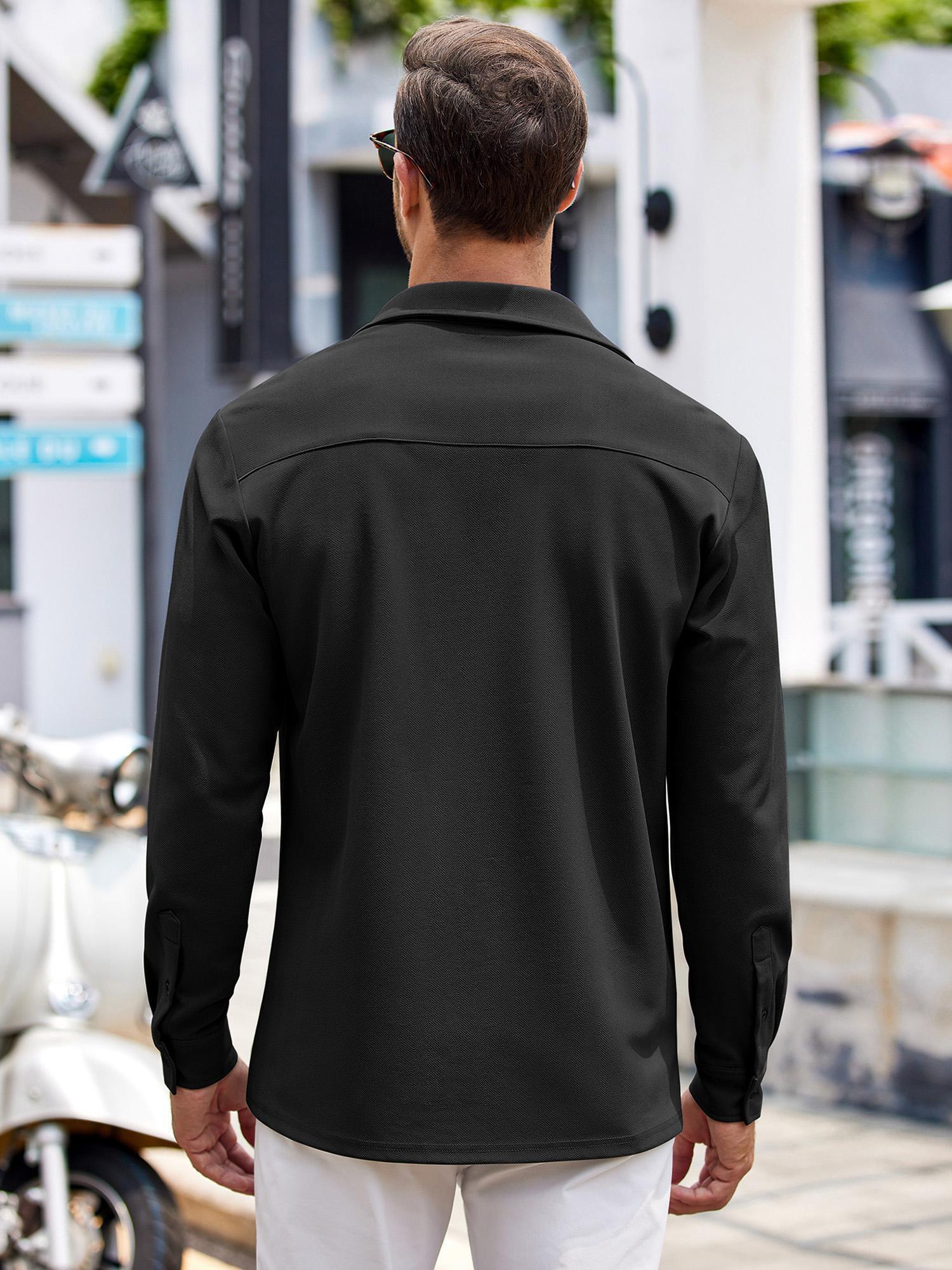 Men'S Long Sleeve Casual Button-Down Shirt - Solid Color, Non-Stretch Knit Fabric, Regular Fit, Wrinkle Free Polyester Shirt for Adult Men - Spring/Fall Basics with Button Details, Plus Size
