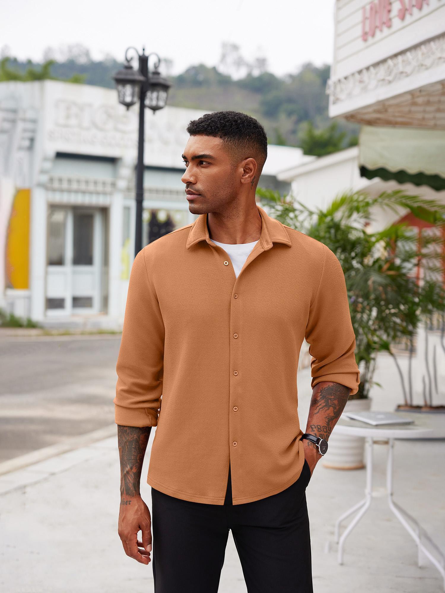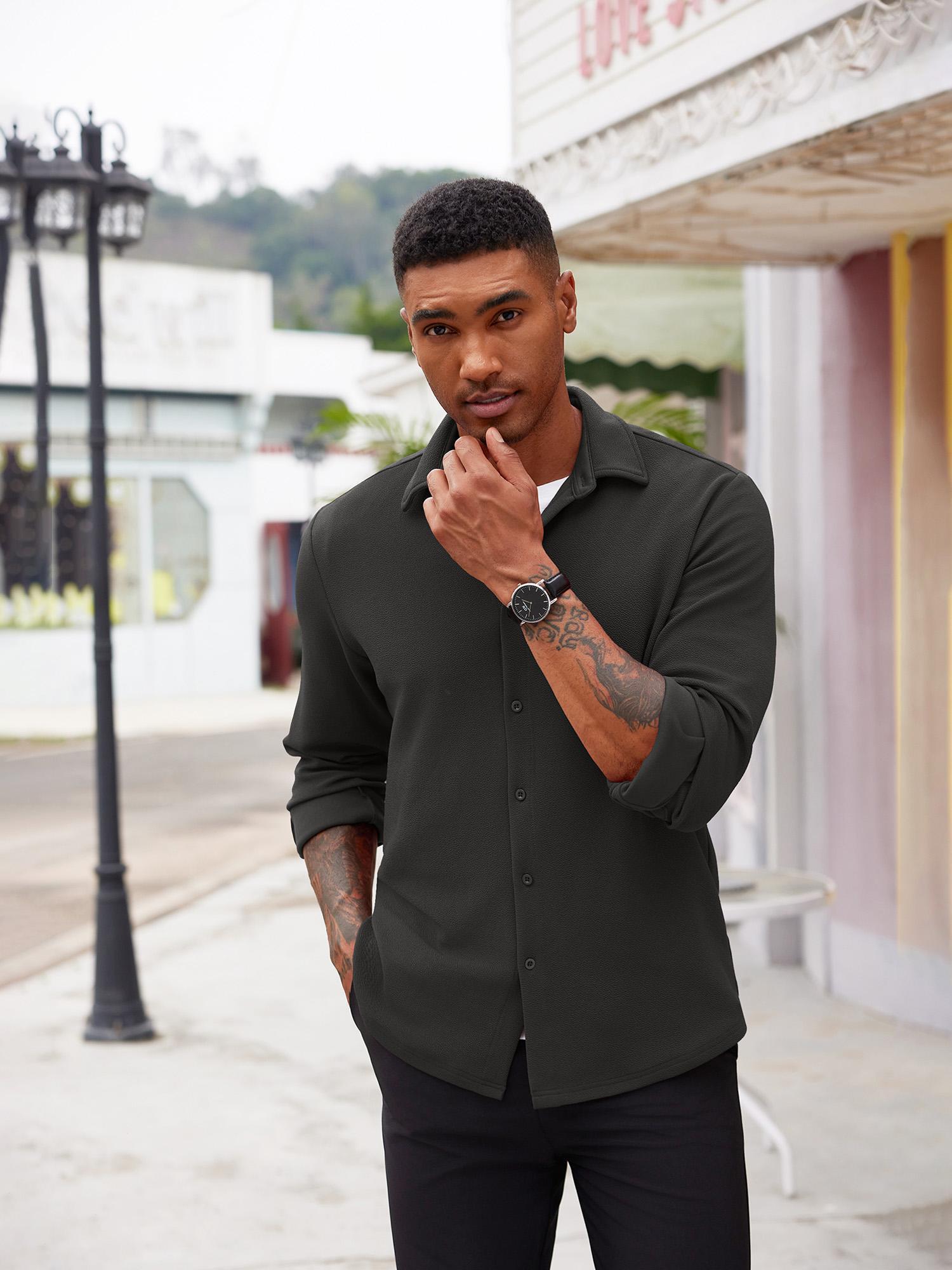 Men'S Overshirt Shacket Jacket Mens Textured Button Down Long Sleeve Shirts Fashion Jacket, Plus Size