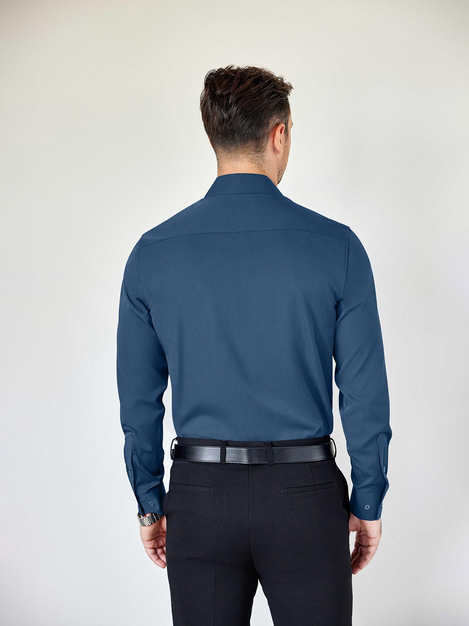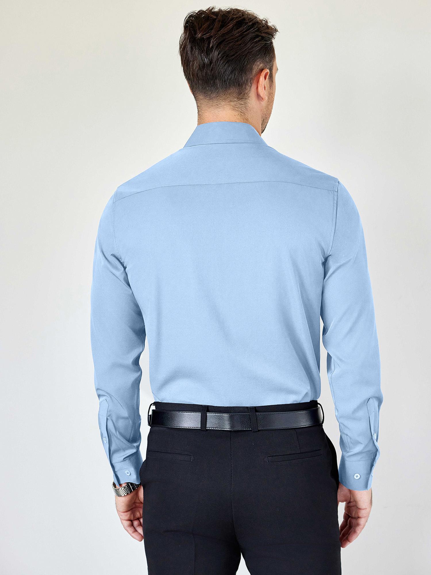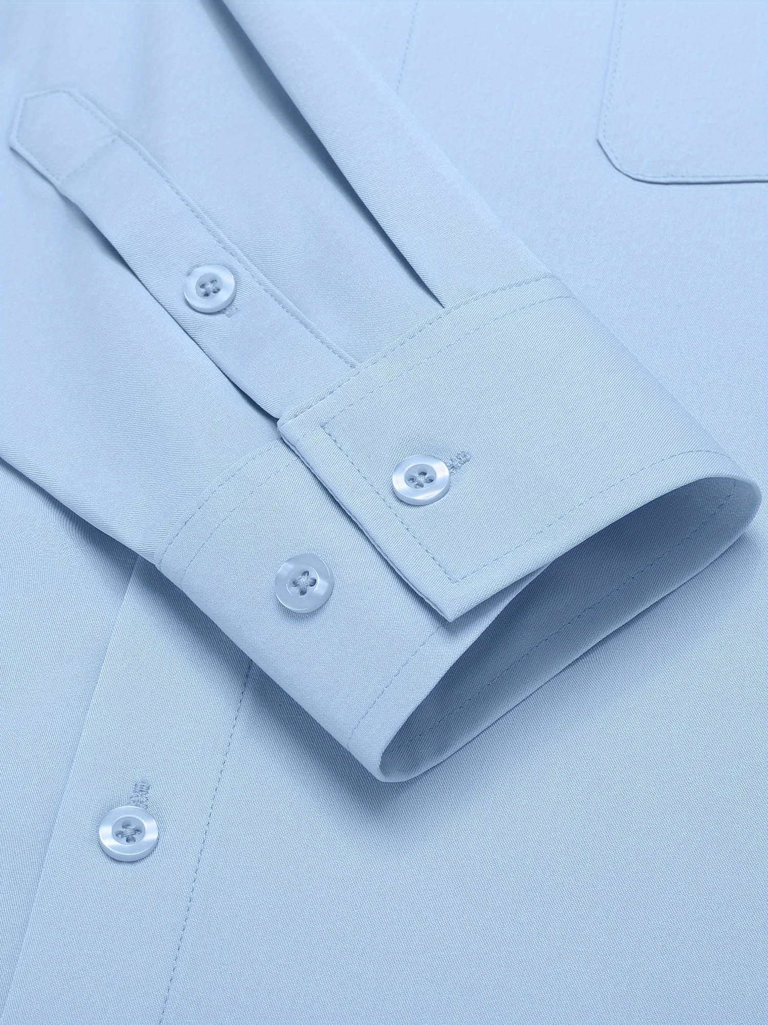 Men'S Plus Size Dress Shirts, Polyester Blend, Casual Work Style, Lapel Collar, Slight Stretch, Solid Color, Button-Down, Regular Fit, Woven, for All Seasons