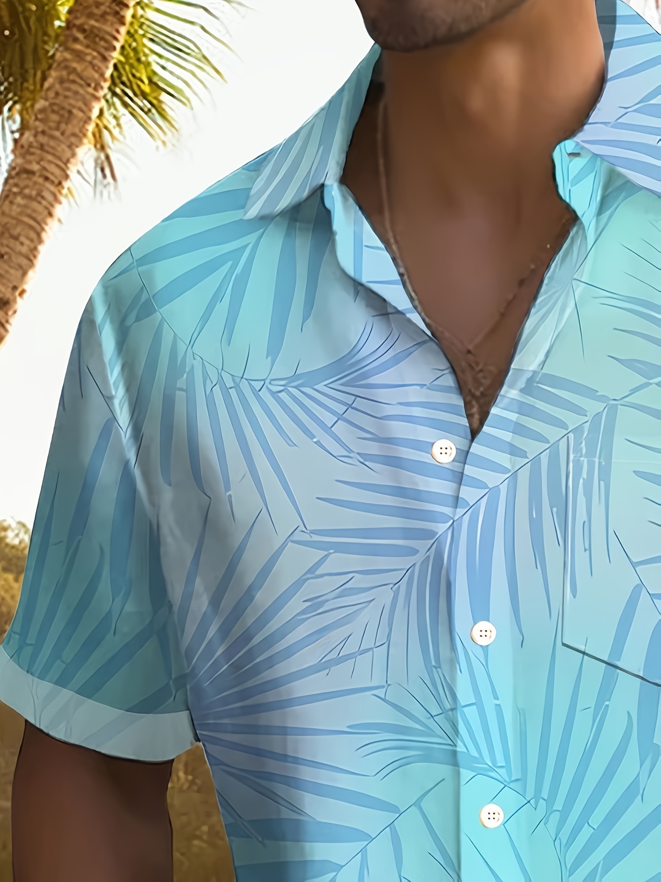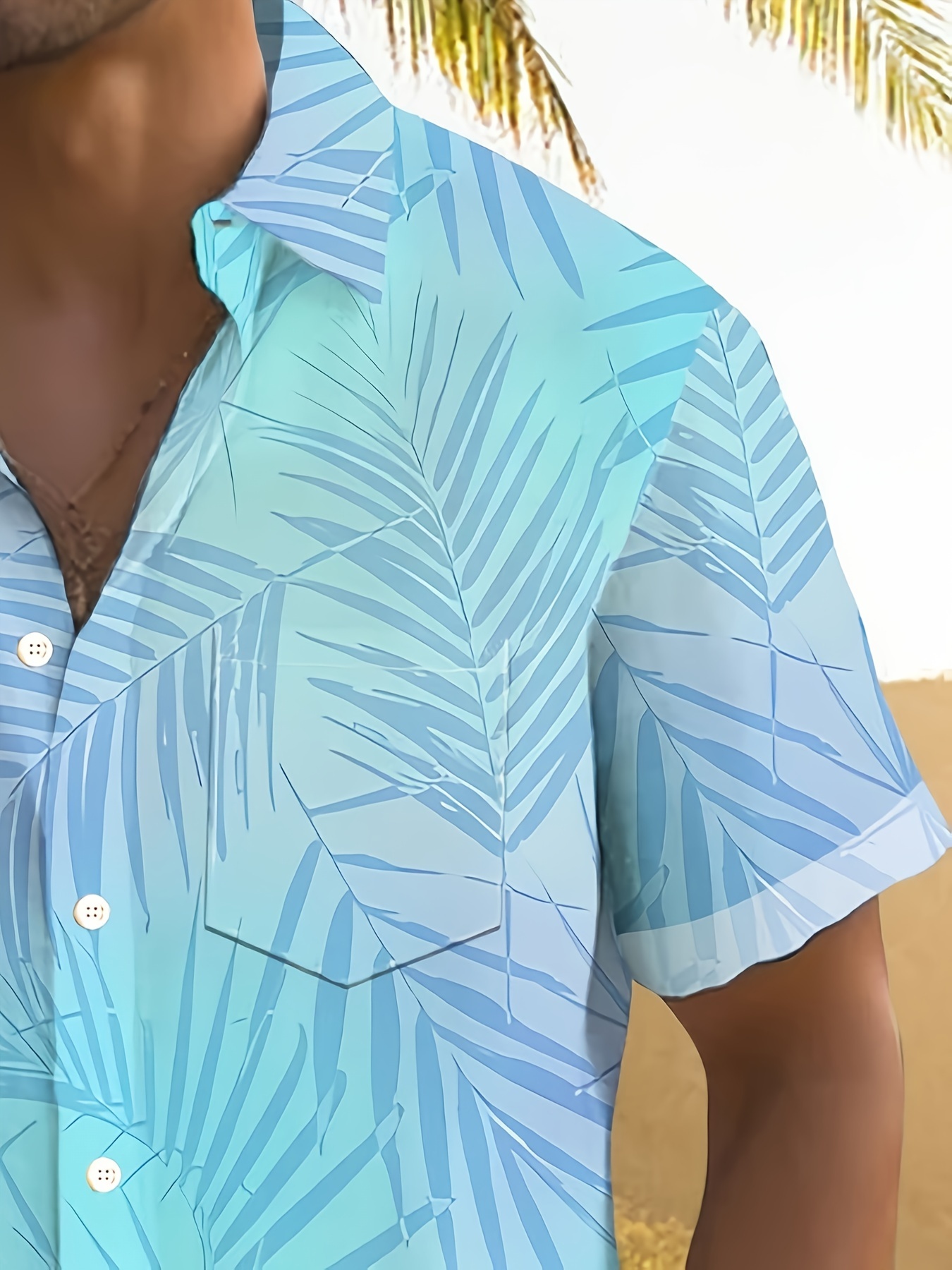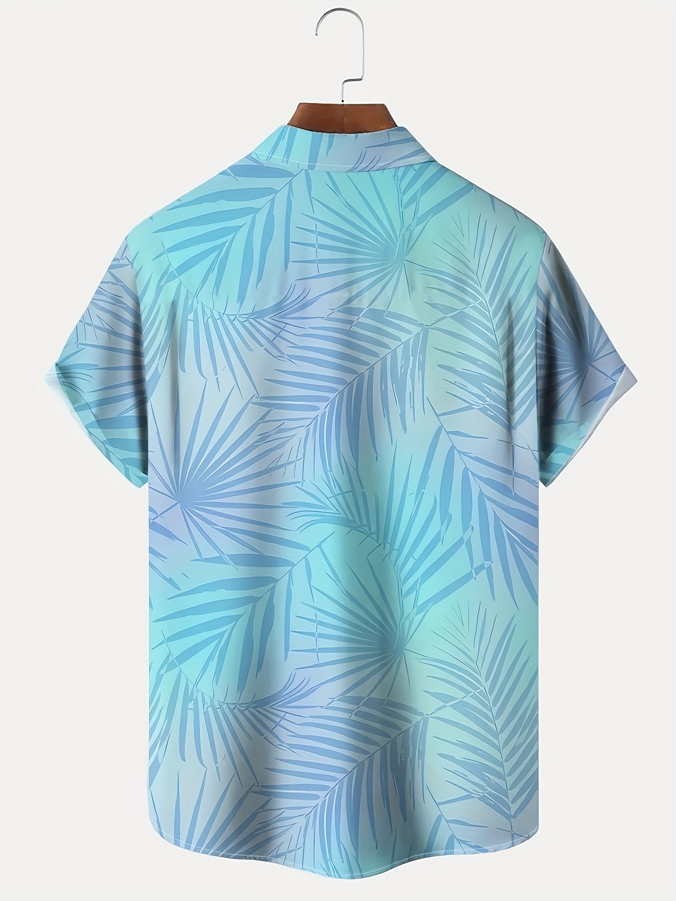 Plus Size Men's Vibrant Hawaiian Gradient Botanical Leaf Print Short Sleeve Relaxed Fit Shirt - Button Front, Functional Pocket, Breathable Fabric, Casual Vacation Style, Comfortable Wear